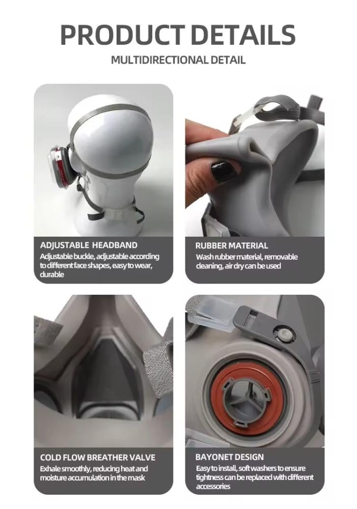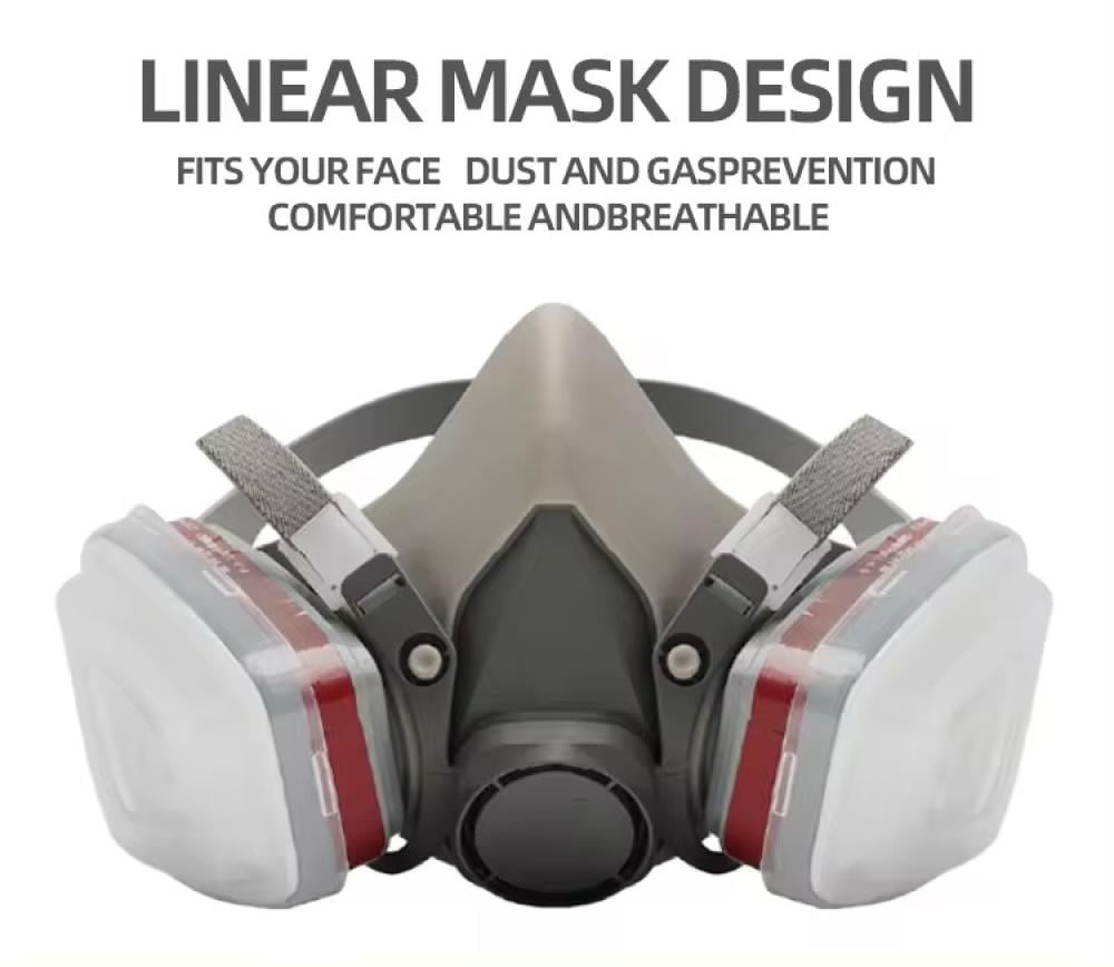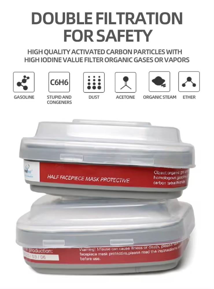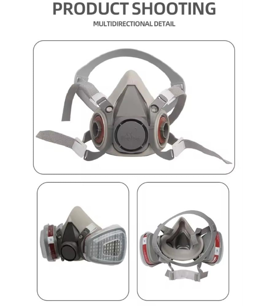 Reusable respirator can prevent certain solid particles and suspended particles, such as dust and harmful gases, pollution, ash, grinding, organic vapor/gas, smoke, pollen, dust and other particles in the ai Suitable for production in cement factories, ceramics factories, shipyards, metal smelting power plants, stone processing. polishing, interior design, sawdust, wood processing, graffiti painting, wall art, powder processing, etc.